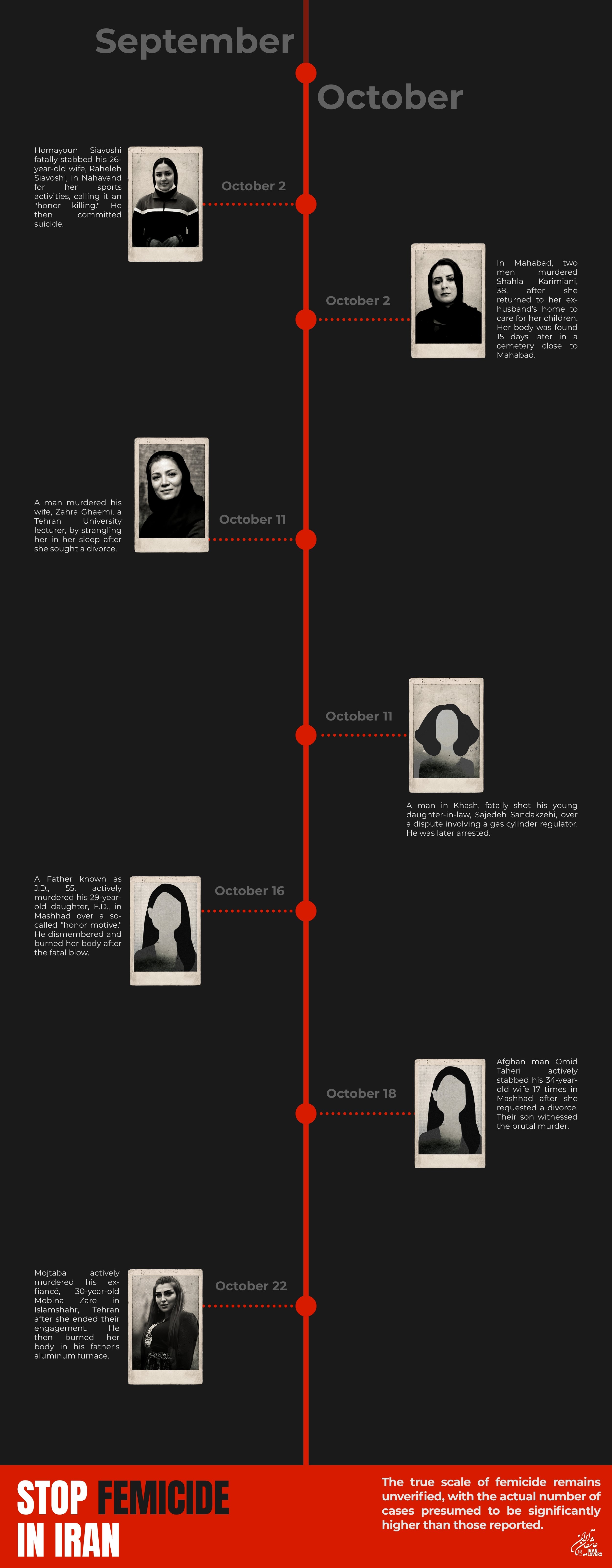 The Femena organization noted the Iran Statistics Center reported that in the first half of 2023, of the 52 cases of femicide officially recorded across various cities in Iran, 21 percent of the cases involved girls under the age of 18. The HRANA human rights news agency, meanwhile, reported that in 2024, there were at least 114 murders of women, and at least 16,264 cases of domestic violence.